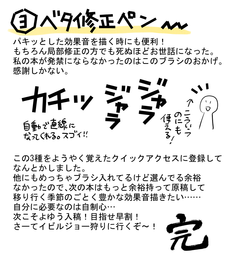 これは、詳細で元の投稿訪問用の Yomu در توییتر 新刊で効果音描くときに死ぬほどお世話になったブラシ紹介 効果音以外もある Clipstudio のスニペット画像です。 ここに